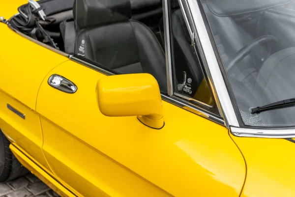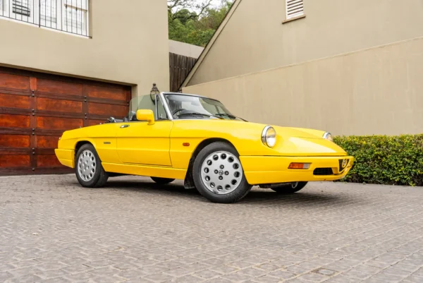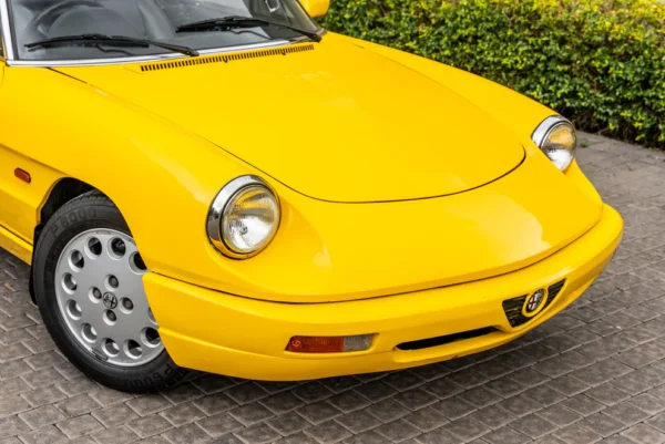 The Spider designation for the open top sports cars originates from the word, speeder, and a two-person open horse carriage. The Alfa Romeo 105/115 Series Spider was produced from 1966 to 1993, remaining in production for almost three decades with only minor aesthetic and mechanical changes. Widely regarded as a design classic, this fourth series version of production came with further mechanical and cosmetic changes. Mechanical changes saw the introduction of the Bosch Motronic electronic fuel injection with an electric fan and cosmetically, losing its front under-bumper spoiler and the rear boot spoiler picking up 164-style rear lighting stretching across the width of the car together with colour coordinated plastic bumpers. This rare late Right-Hand-Drive example of the Series 4 model is finished in the unusual shade of Alfa Yellow with a black leather interior. Imported from the United Kingdom, this striking Spider is offered with all relevant documents for onward registration.